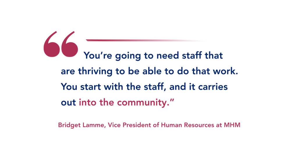 Over the years, MHM has created policies, processes, and procedures, sharpening its focus on continuous improvement. This intentional approach led to significant milestones in the organization’s excellence journey, including submitting an application for the 2025 Malcolm Baldrige National Quality Award—the nation’s only presidential honor recognizing performance excellence. MHM received the prestigious recognition as a 2025 finalist and was one of only six organizations across the country to advance to the awards’ final phase and receive a Best Practice Spotlight for its Thriving Workforce.